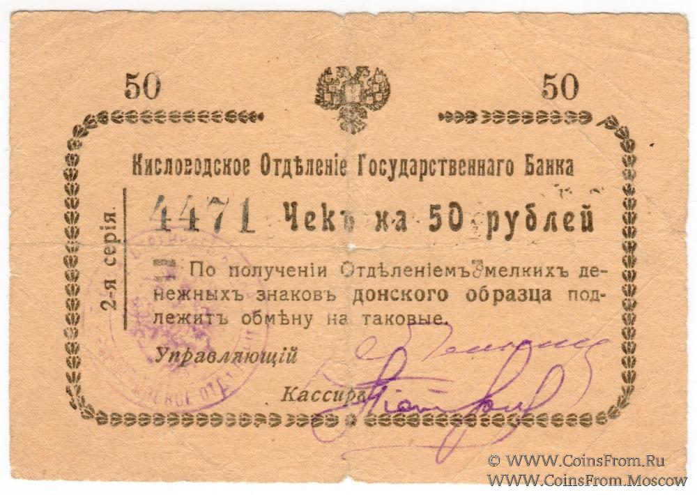 Чек (1919), 2 серия. Большой орёл. Кисловодское Отделение Государственного Банка.