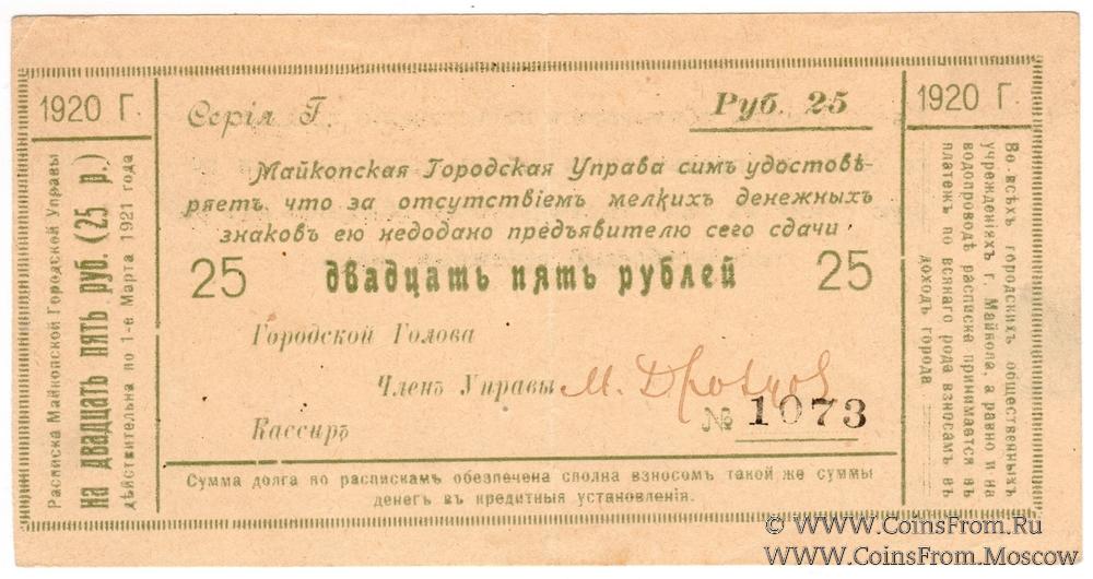25 рублей 1920 г. (Майкоп)