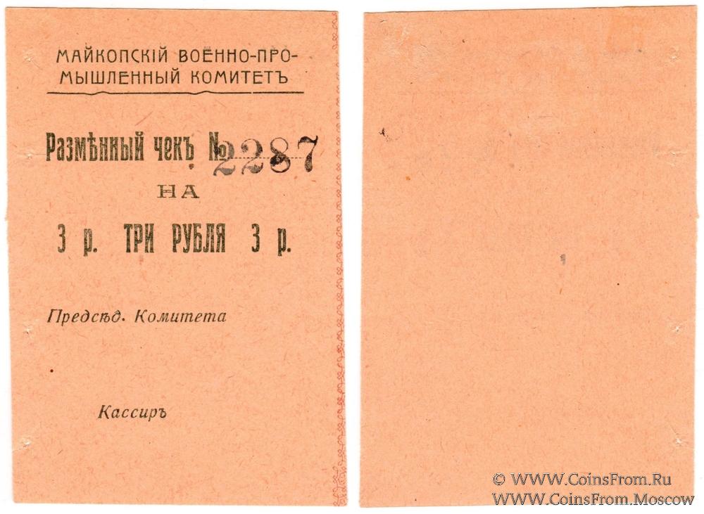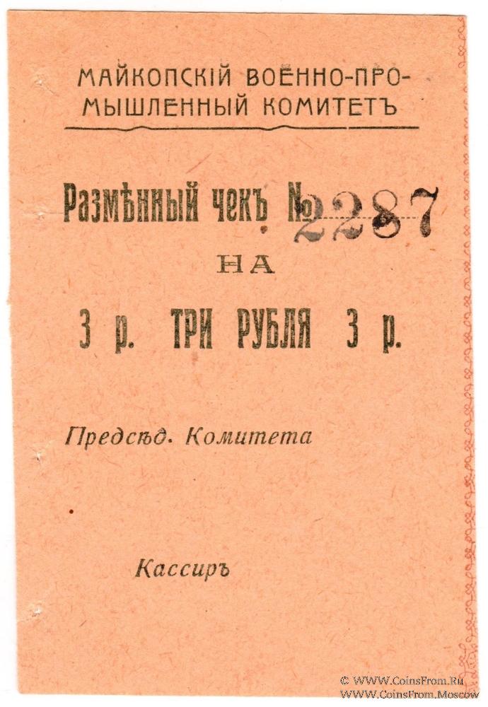 Разменный чек без даты (1919 г.). Корешок к чеку № 2287. Майкопский Военно-Промышленный Комитет.