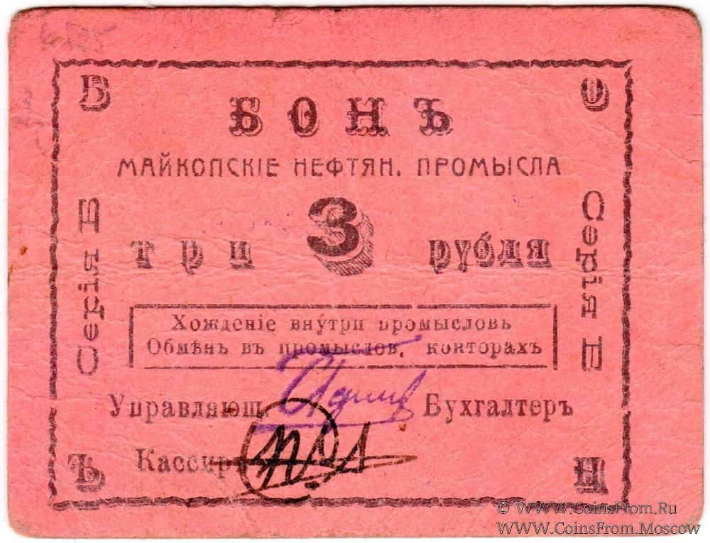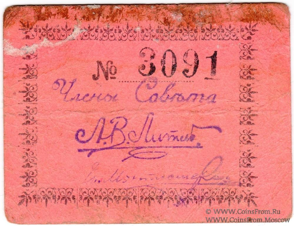 Бон майкопских нефтяных промыслов 1919 г. Номер 4-значный. Без подписи бухгалтера. Совет Съезда Кубанских Нефтепромышленников.