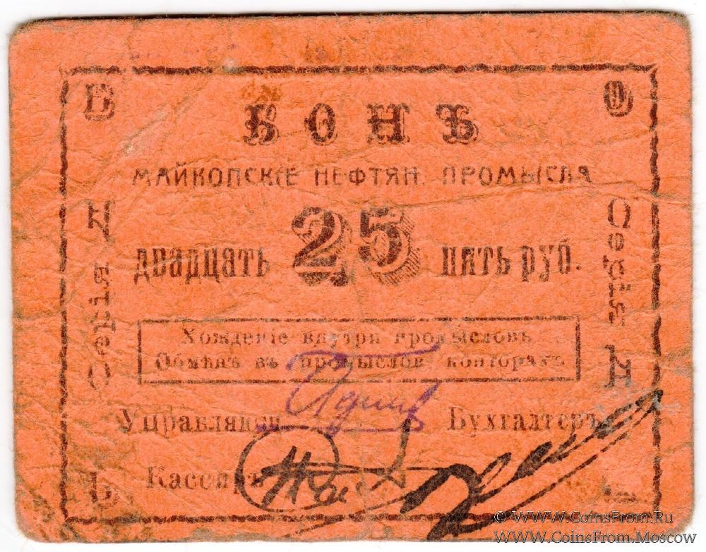 Бон майкопских нефтяных промыслов 1919 г. Совет Съезда Кубанских Нефтепромышленников.