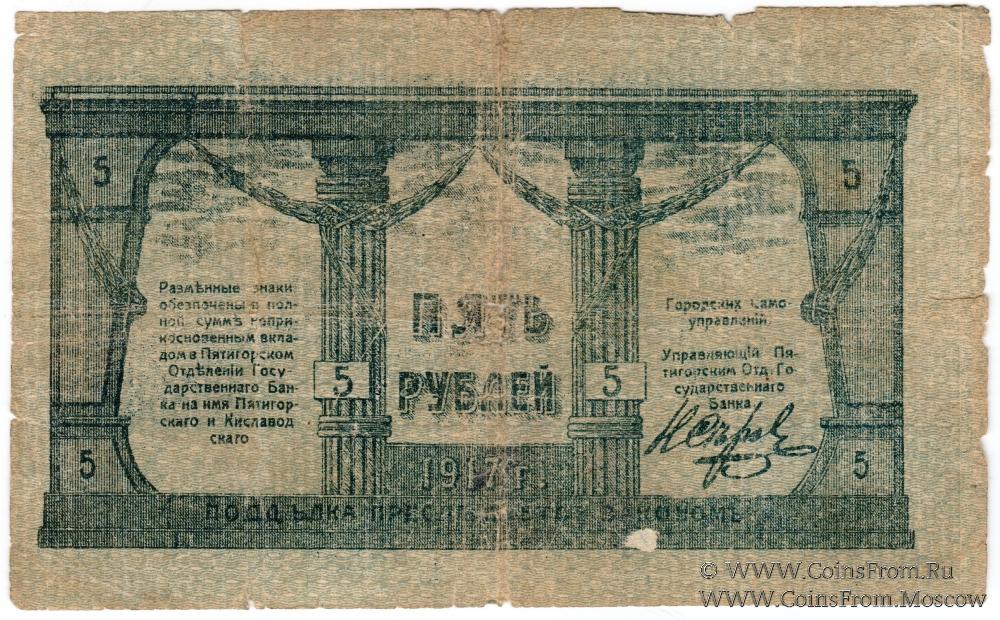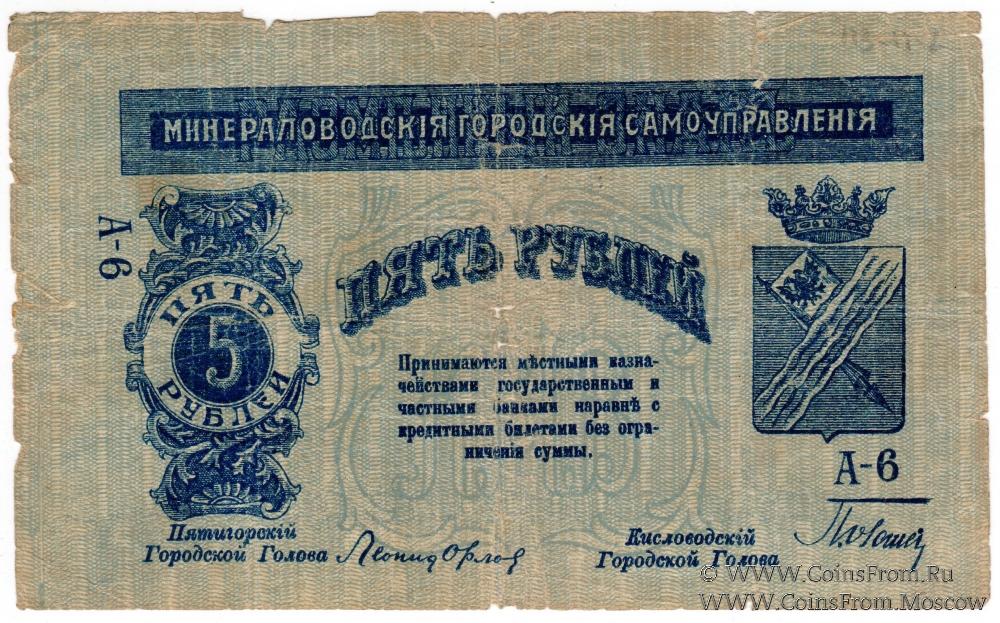 Разменный знак 1917 г. Выпуск 1. Литера "А". Минеральные Воды. Минераловодское Городское Самоуправление.