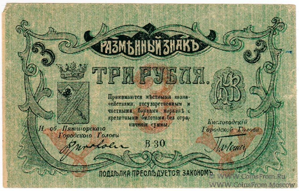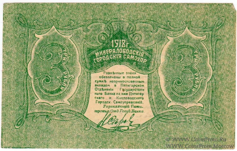 Разменный знак 1918 г. Выпуск 3. Литера "В". Минеральные Воды. Минераловодское Городское Самоуправление.