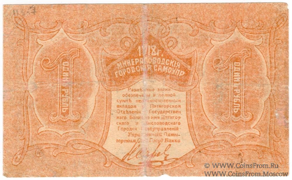 Разменный знак 1918 г. Выпуск 2. Литера "Б". Минеральные Воды. Минераловодское Городское Самоуправление.