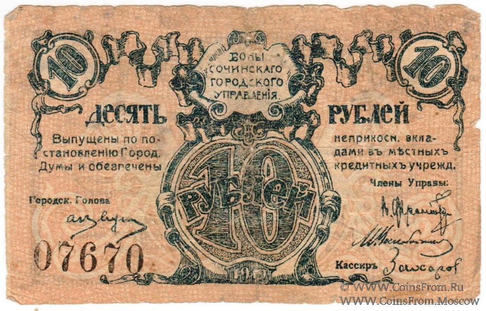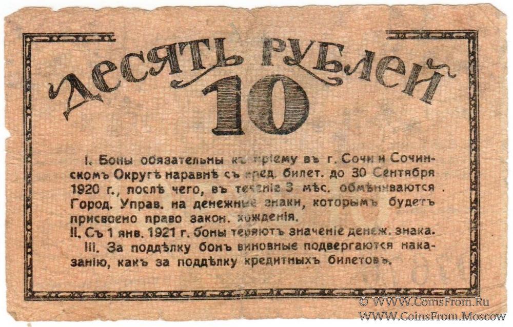 Бон Сочинского Городского Управления 1919 г. Сочинское Городское Управление.