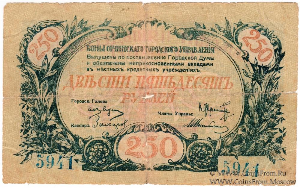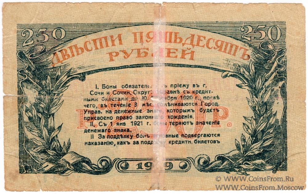 Бон Сочинского Городского Управления 1919 г. Сочинское Городское Управление.