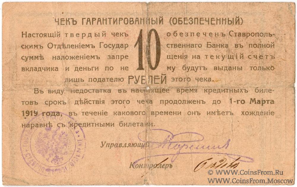 Серия 2 (действителен до 1 марта 1919 г.). Номер 5-значный. Обеспечен текущим счетом вкладчика.