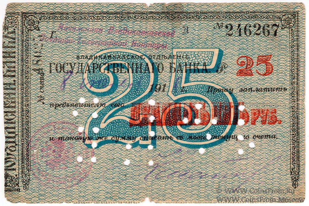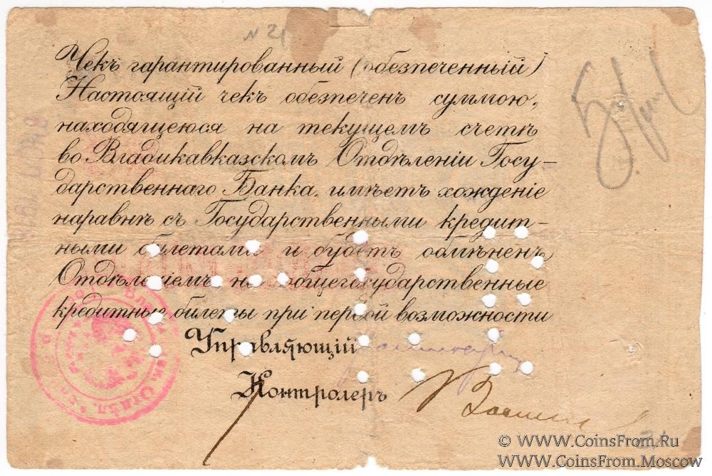 Счет "Начальника Владикавказской Почтово-Телеграфной Конторы". Погашен перфорацией "14 ГБ".