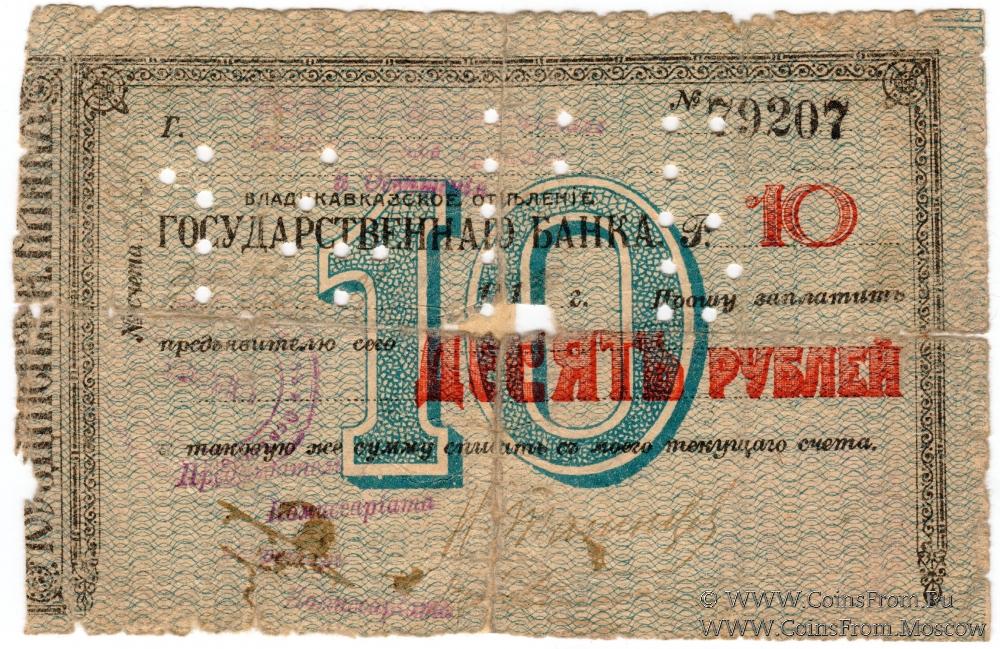 Чек. Синий, рамка без текста. Счет Комиссариата… Погашен перфорацией "14 ГБ". Владикавказское Отделение Государственного Банка.