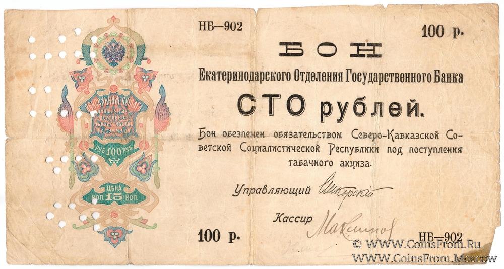 "Бон обеспечен обязательством Северо-Кавказской Советской Социалистической Республики под поступления табачного акциза и имеет обязательное хождение в пределах всей Республики наравне с кредитными билетами".