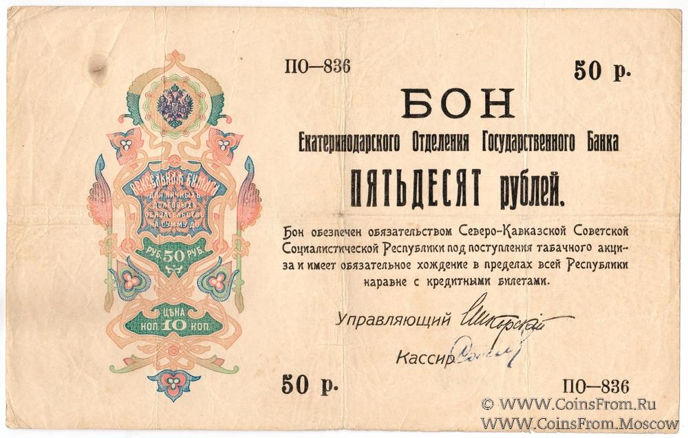 "Бон обеспечен обязательством Северо-Кавказской Советской Социалистической Республики под поступления табачного акциза и имеет обязательное хождение в пределах всей Республики наравне с кредитными билетами".