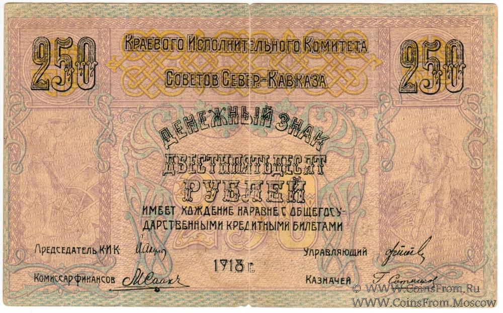 Денежный знак 1918 г. Серия Б. Краевой Исполнительный Комитет Советов Северного Кавказа.