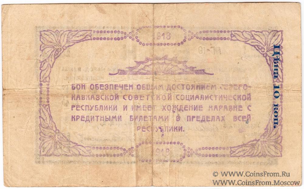 Бон 1918 г. Голубой фон на аверсе. Бумага жёлтая. Две литеры в серии. Временное Центральное Управление Отделениями Народного Банка.