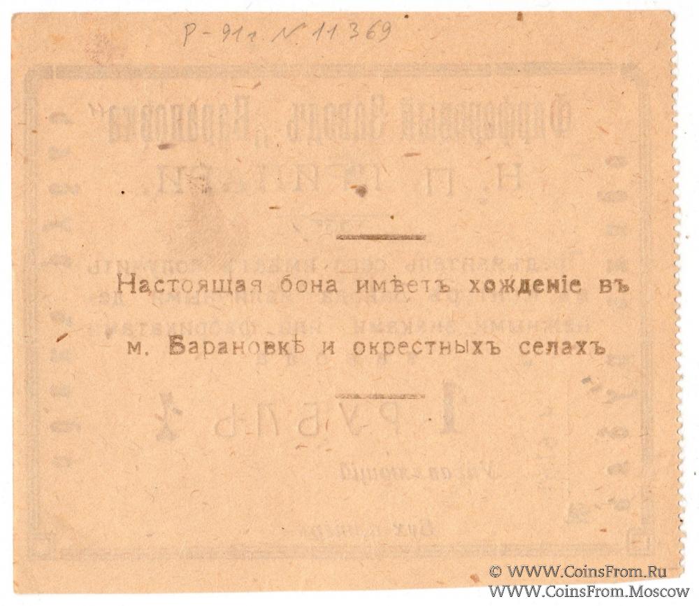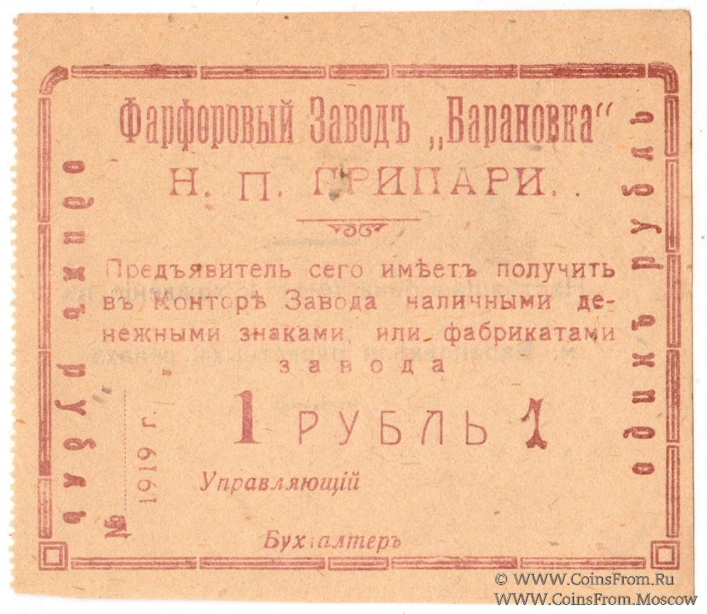 Бон. Бланк. Фарфоровый Завод "Барановка" Н.П. Грипари.