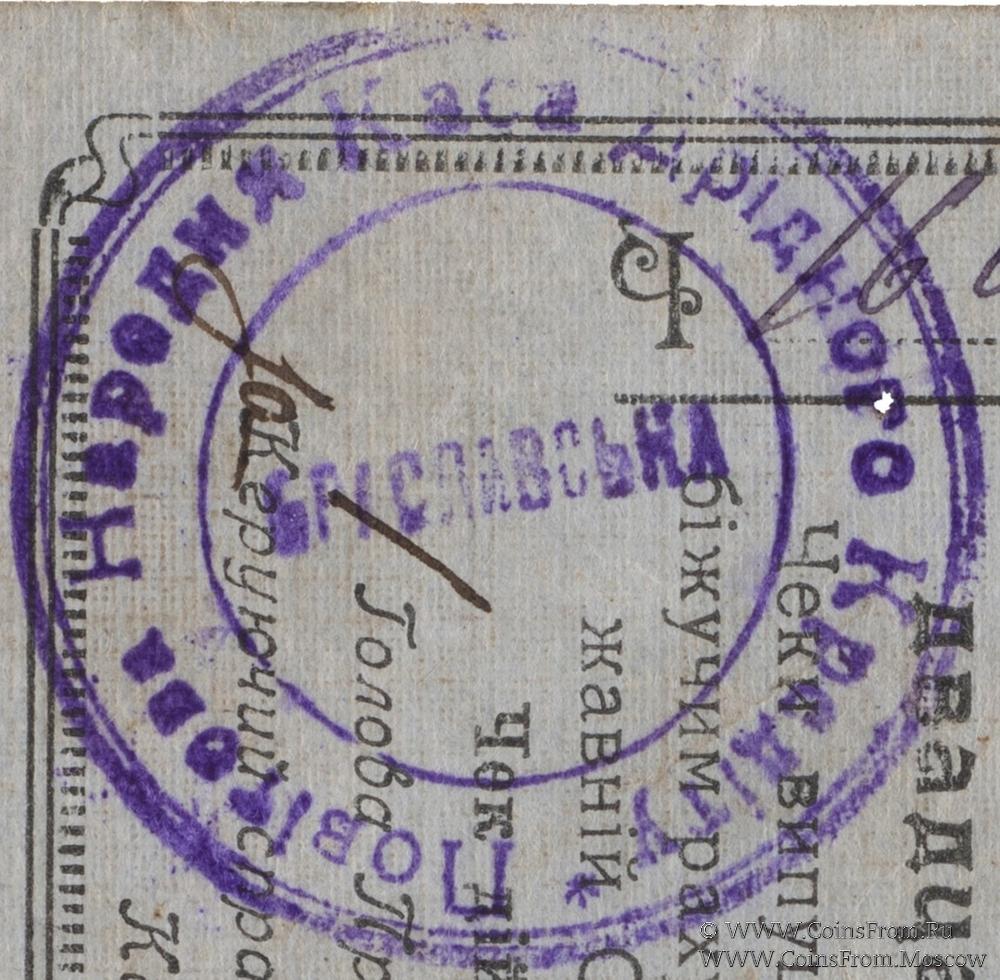 Чек 1919 г. Действителен до 1 января 1921 г. (Чек дiйсний по 1 сiчня 1921 року).