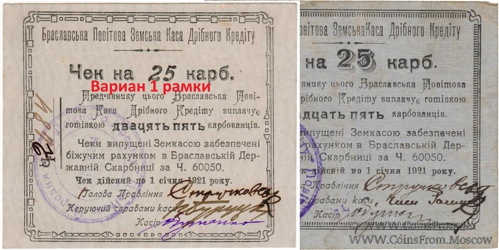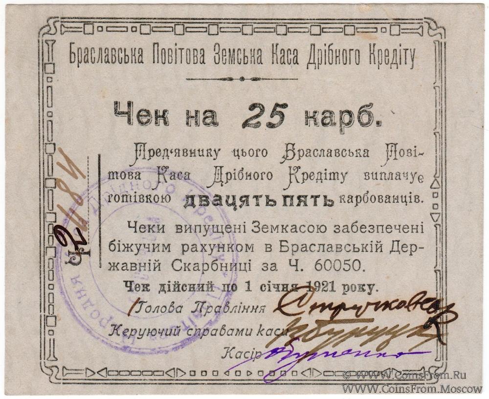 Печать круглая: "БРАСЛАВСЬКА" (по центру) / "Повітова Народня Каса Дрідного Кредiту *" (по кругу)