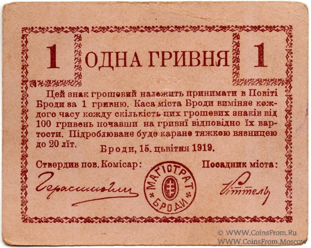1 гривна 1919 г. (Броды)