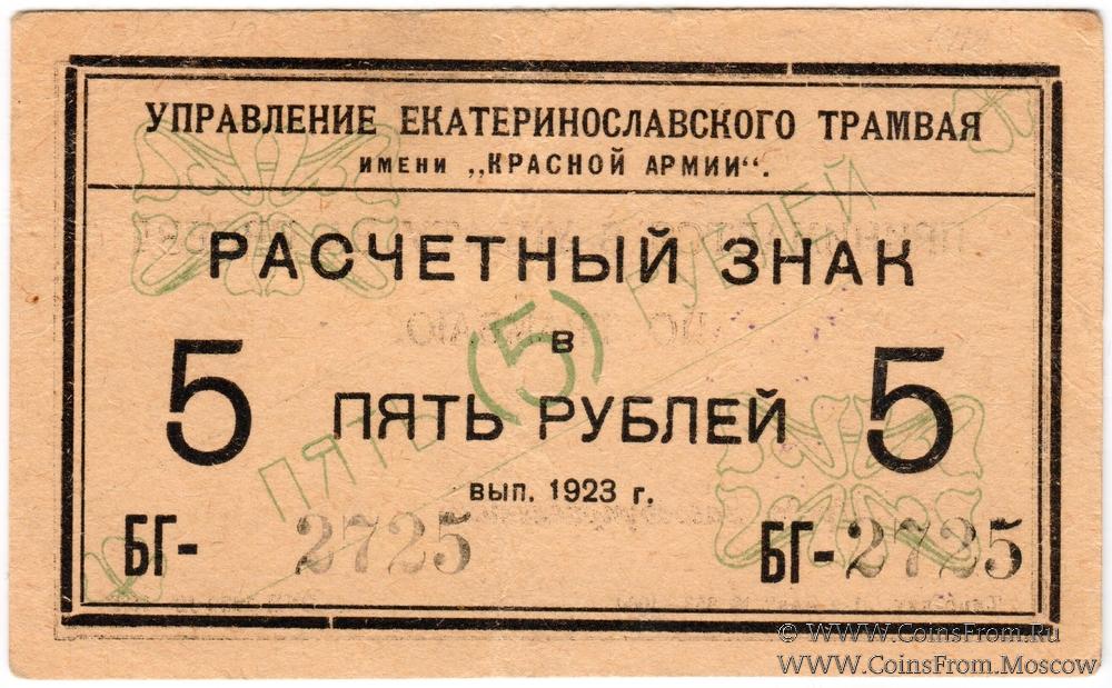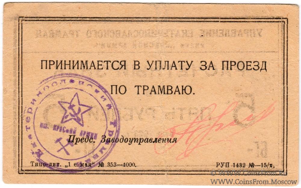 Расчетный знак. Управление Екатеринославского трамвая имени "Красной Армии".