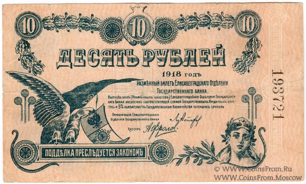 10 рублей 1918 г. (Елизаветград)