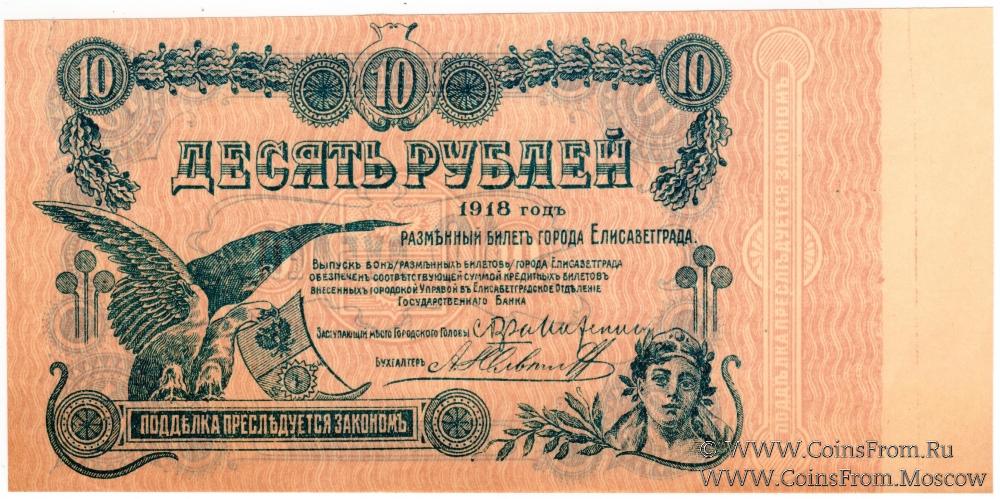 Разменный билет города Елизаветграда 1918 г. Фон розовый. БРАК: не обрезан (край листа широкий).
