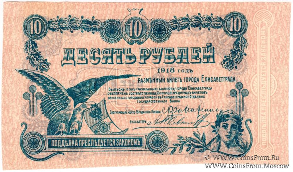 10 рублей 1918 г. (Елизаветград). БРАК
