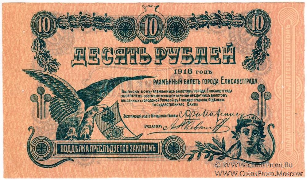 Разменный билет города Елизаветграда 1918 г. Фон розовый.