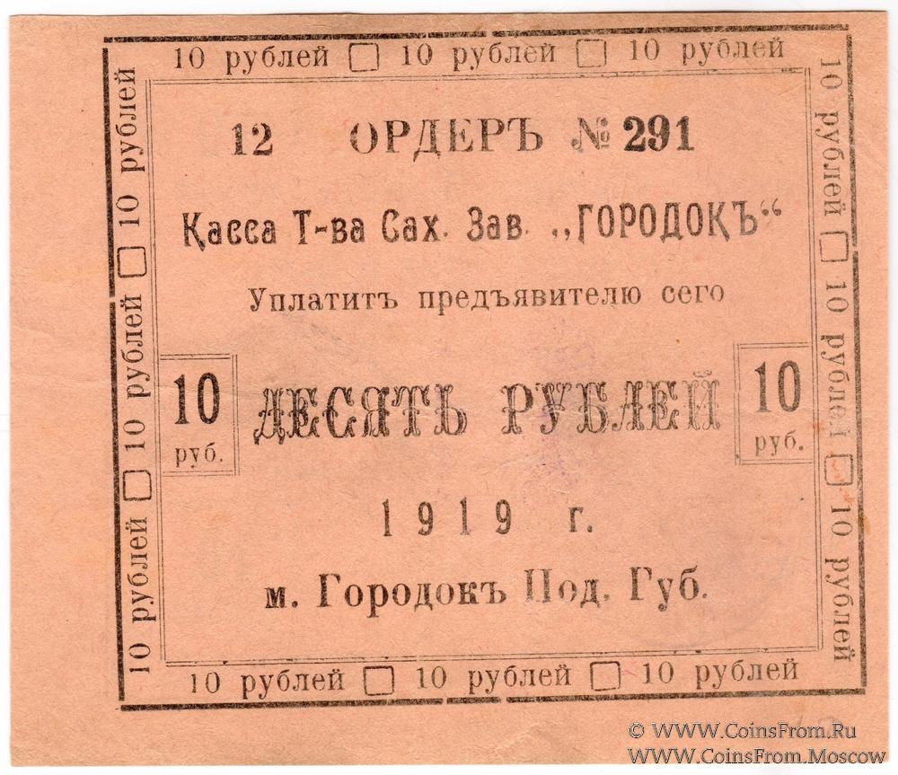 Ордер 1919 г. Касса Товарищества Сахарных Заводов "ГОРОДОКЪ".