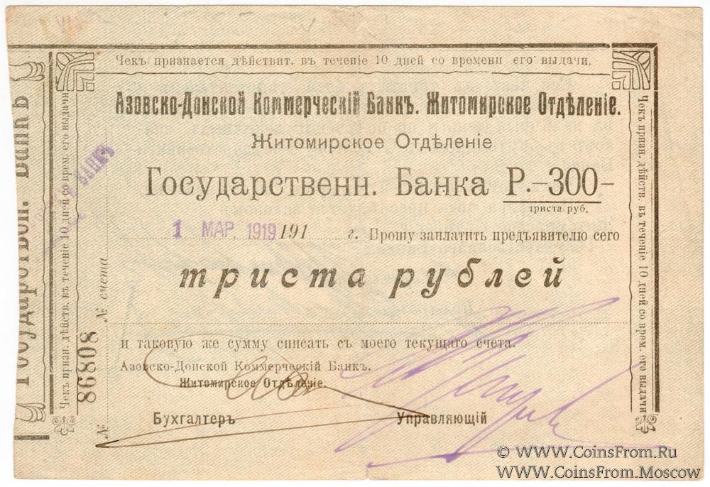 Житомирское отделение. Азовско-Донской коммерческий Банк. Государственный Банк.