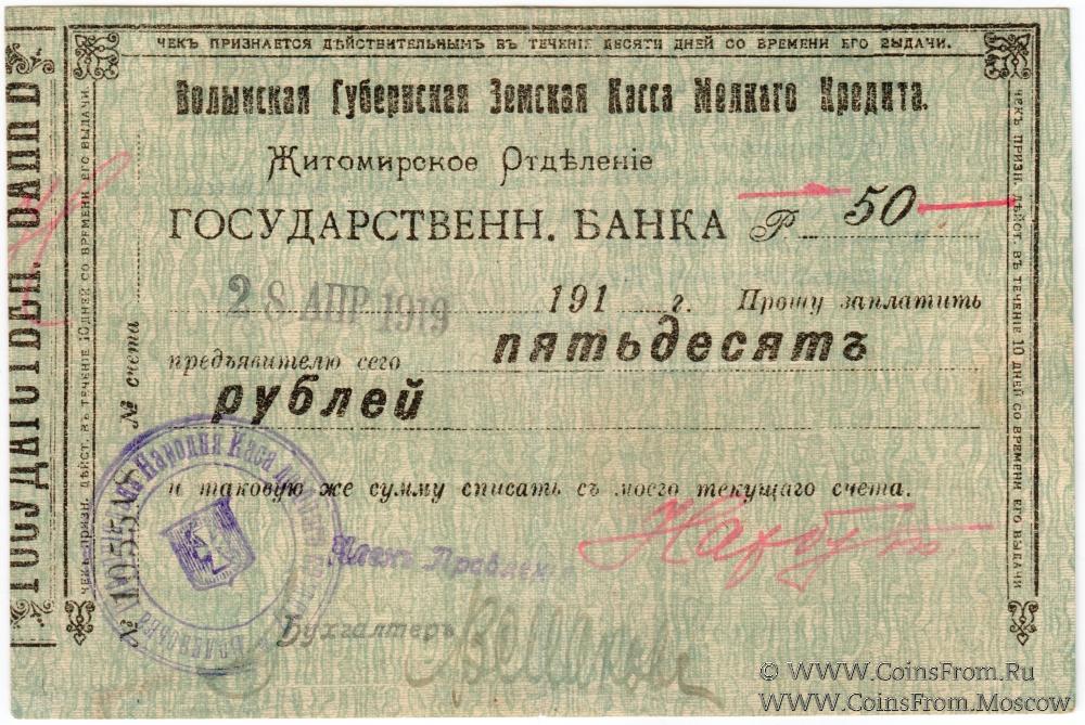 Без водяных знаков. Волынская Губернская Земская Касса Мелкого Кредита.