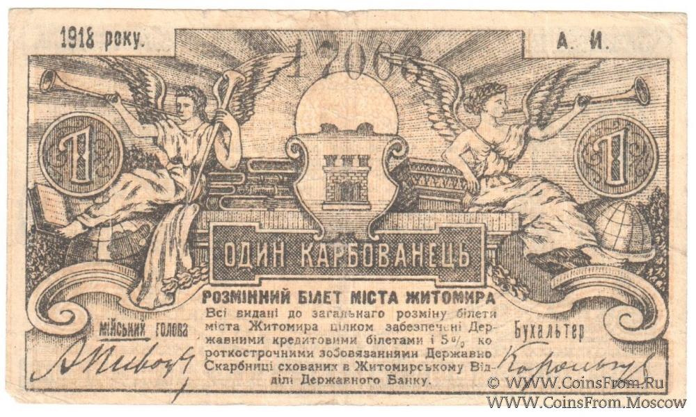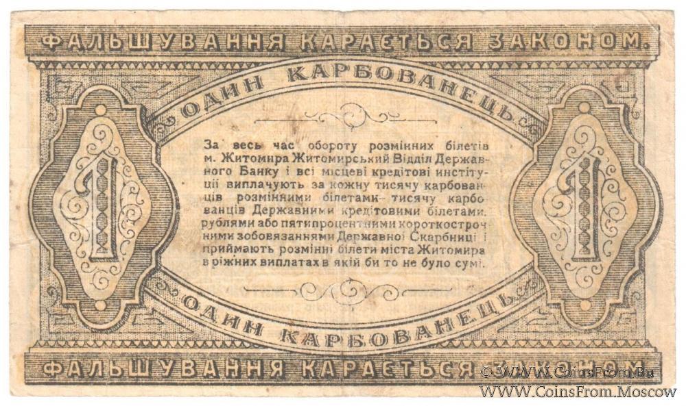Разменный билет (Розмiнний бiлет) 1918 г. Номер 5-значный 6,5 мм, бумага простая. Городское самоуправление.