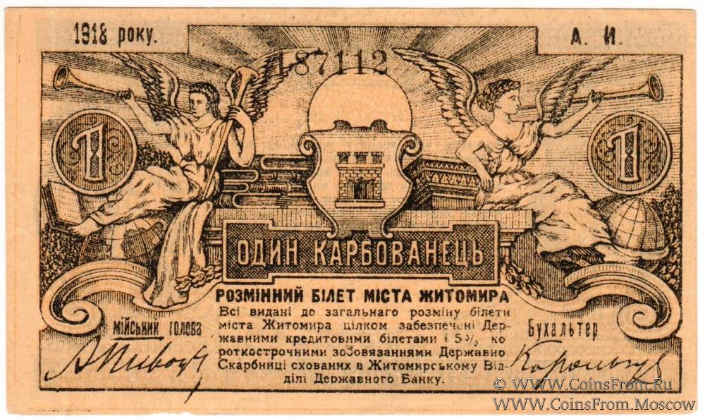 Разменный билет (Розмiнний бiлет) 1918 г. Номер 6-значный 4,5 мм, бумага простая. Городское самоуправление.