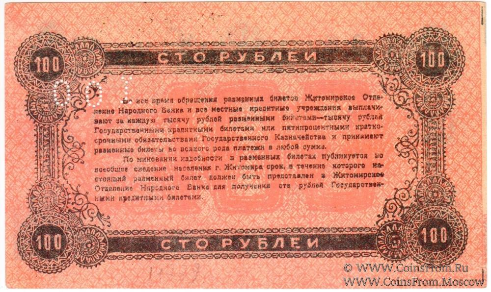 Разменный билет Народного Банка 1919 г. Номер 6-значный. Перфорация широкая, номер черный 7 мм, сдвиг фоновой сетки. Народный Банк.