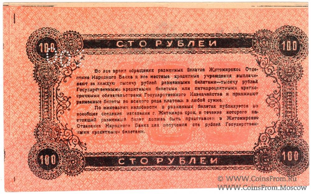 Разменный билет Народного Банка 1919 г. БРАК обрезки: сдвиг рисунка на аверсе и реверсе.