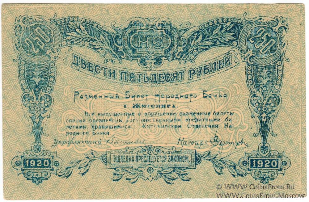 Разменный билет Народного Банка 1920 г. Номер 6-значный черный 6 мм, бумага плотная. Серия АГ. Народный Банк.