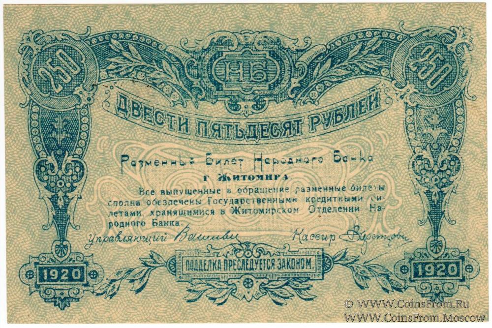 250 рублей 1920 г. (Житомир)