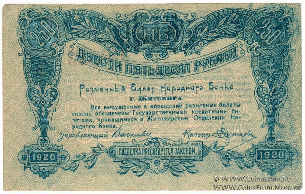 250 рублей 1920 г. (Житомир)