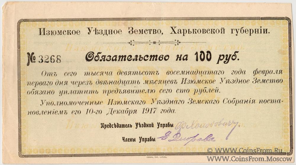 Обязательство 1918 г. Изюмское Уездное Земство.