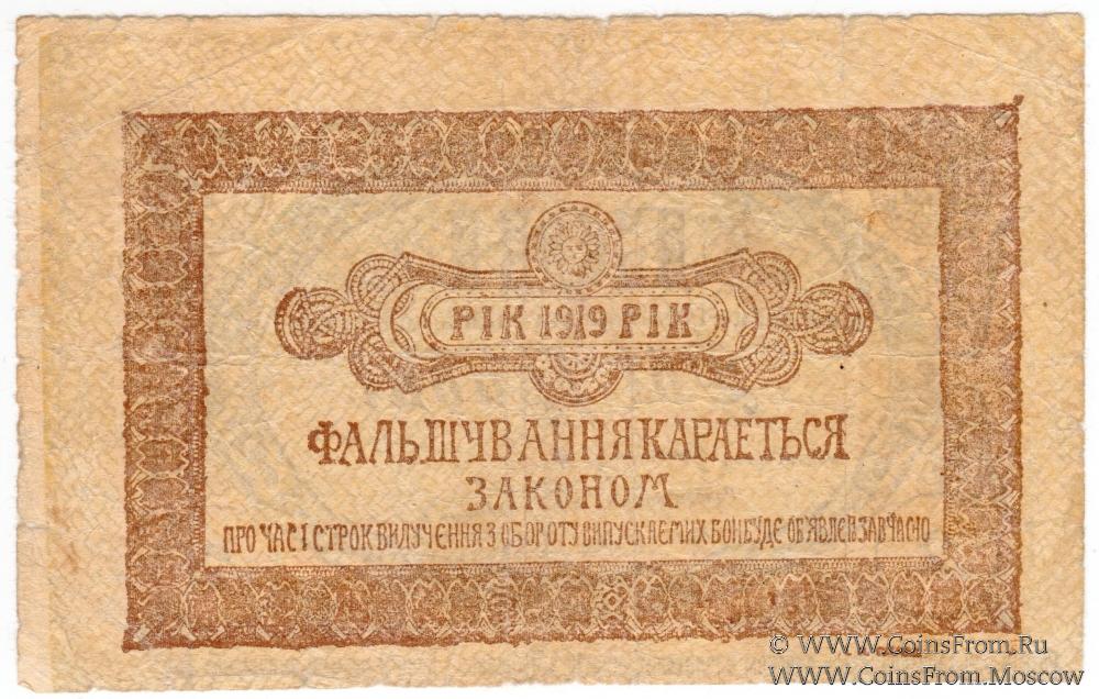 Бон 1919 г. Каменец-Подольской Городской Управы (Кам'янець-Подільської Міської Управи).