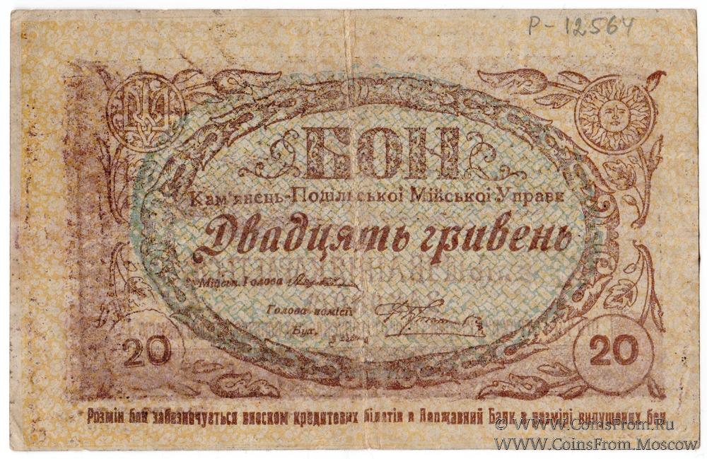 Бон 1919 г. Каменец-Подольской Городской Управы (Кам'янець-Подільської Міської Управи).