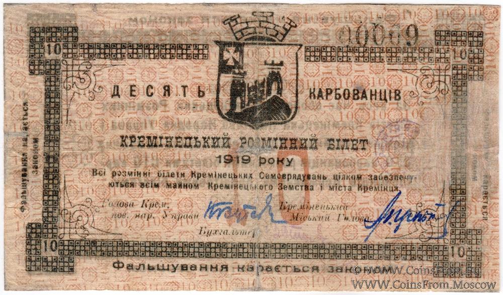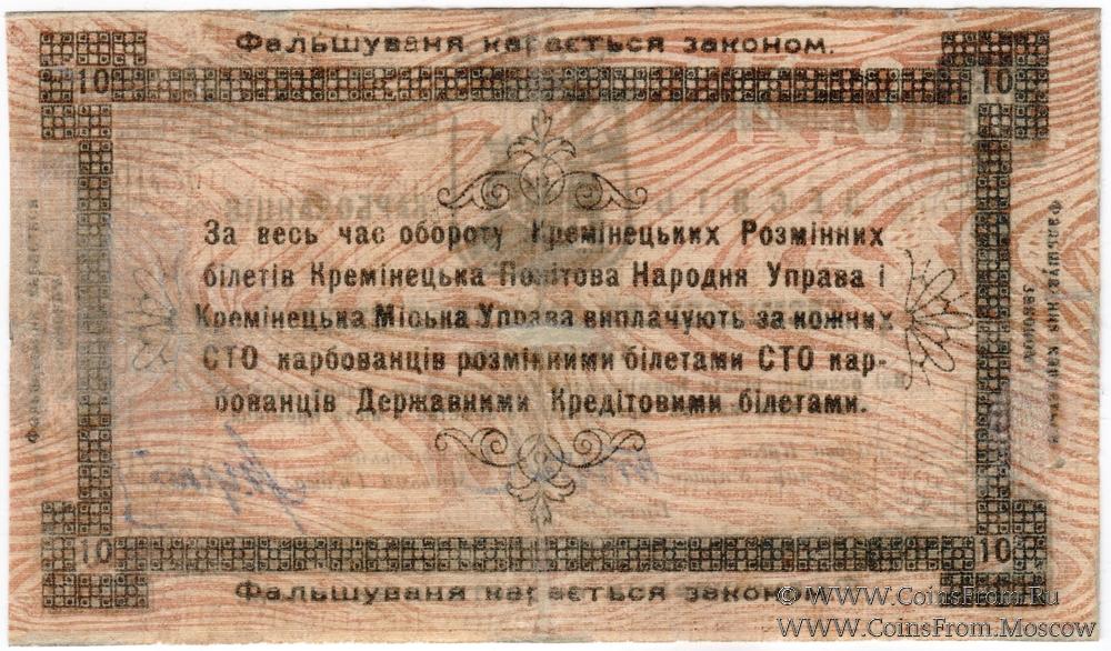 Разменный билет. Номер чёрный. Уездная Народная Управа и Кременецкая Городская управа.