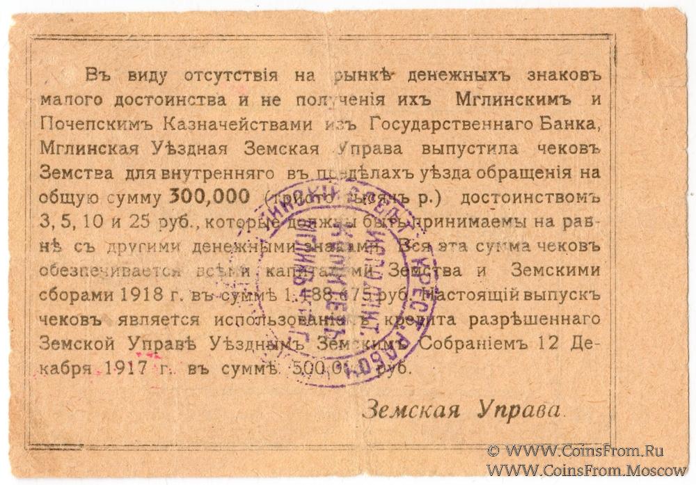 Чек 1918 г. Мглиниская Уездная Земская Управа.