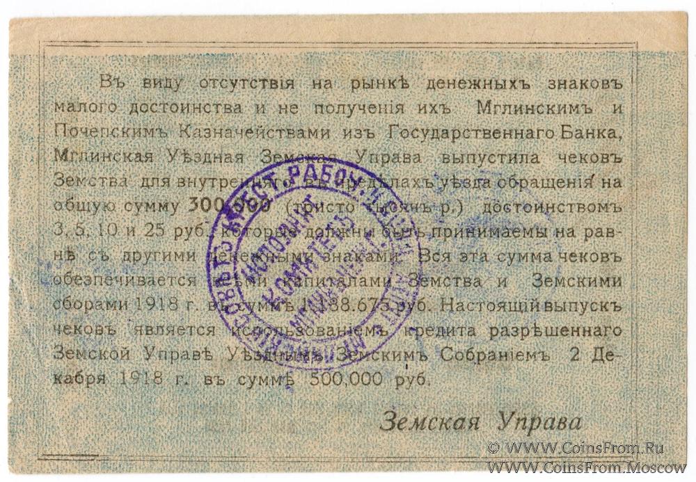 На реверсе печать: «ИСПОЛНИТ. КОМИТЕТЪ МГЛИНЪ ЧЕРН. Г.» (в центре) / «МГЛИНСКİЙ СОВЪТЪ КРЕСТ. РАБОЧ. И СОЛД. ДЕПУТ.» (по кругу).