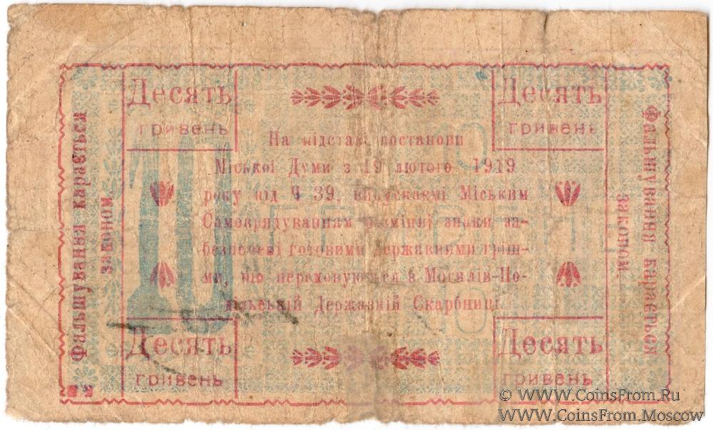 Разменный билет (Розмiнний бiлет). Выпуск 19.02.1919 г. Серия AI. Городское Самоуправление (Miське Самоврядування).