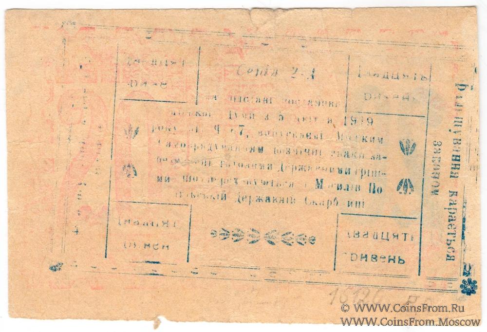 Разменный билет (Розмiнний бiлет). Выпуск 05.04.1919 г. Серия 2-А. Городское Самоуправление (Miське Самоврядування).