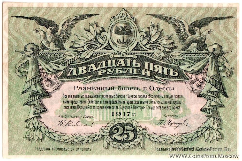 25 рублей 1917 г. (Одесса) 25 рублей 1917 г. (Одесса) 25 рублей 1917 г. (Одесса)