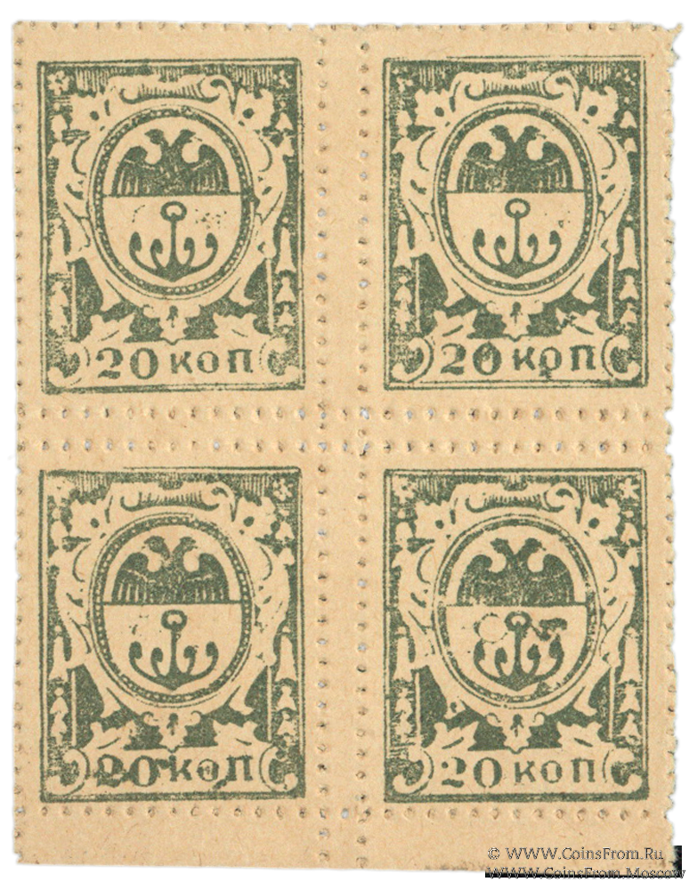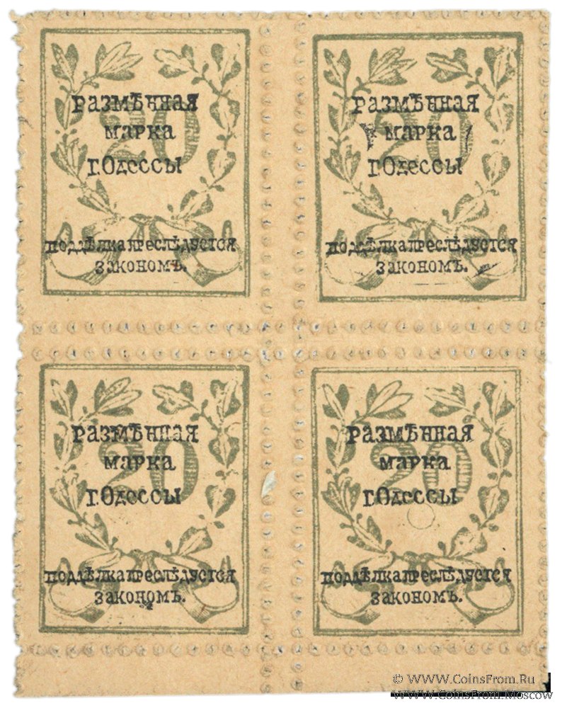 Разменная марка г. Одессы без даты (1917 г. ). Квартблок. Городское Самоуправление.