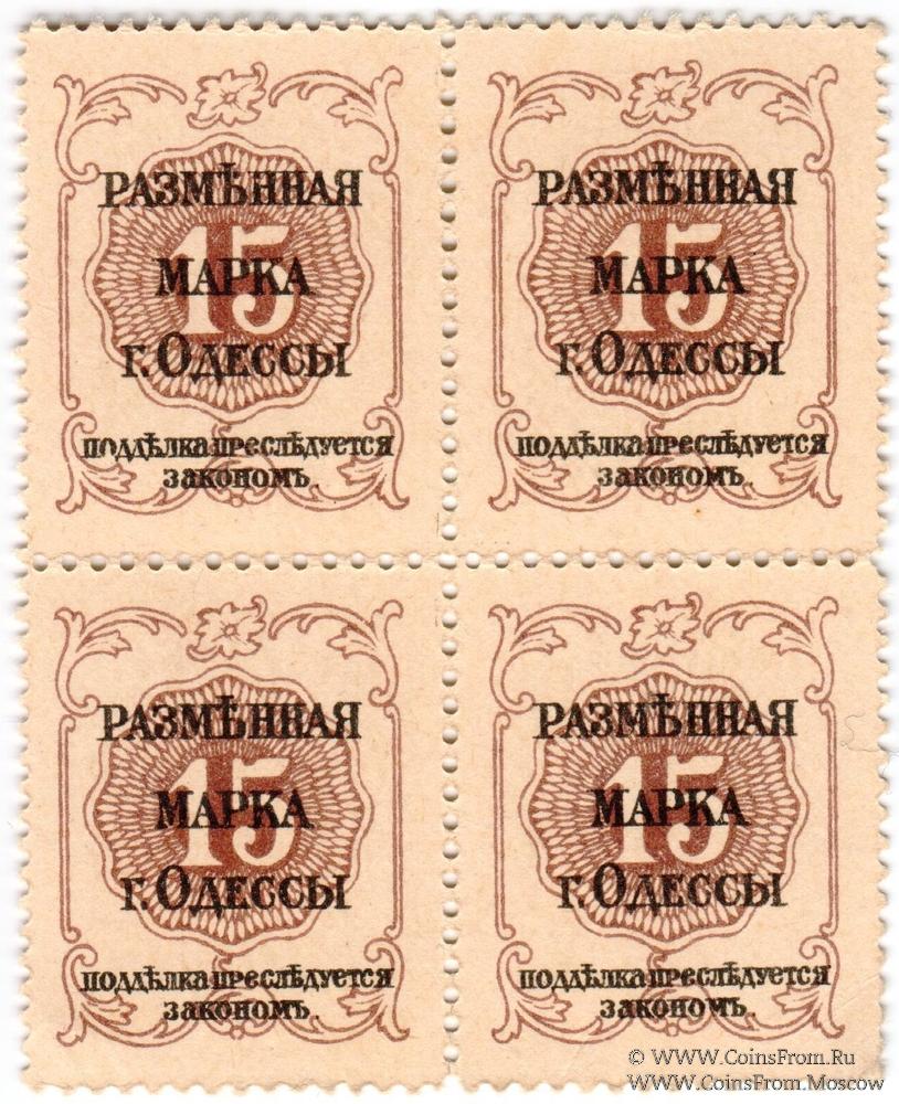 Разменная марка г. Одессы без даты 1917 г. Квартблок. Городское Самоуправление.