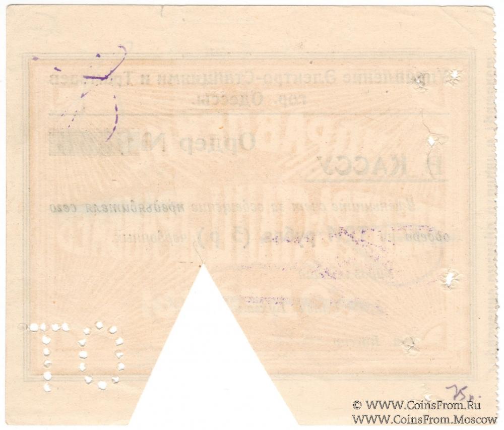 Ордер без даты (1923 г.) в червонном исчислении. Гашение. Перфорация "ОТ". Управление Электро-Станциями и Трамваев гор. Одессы.