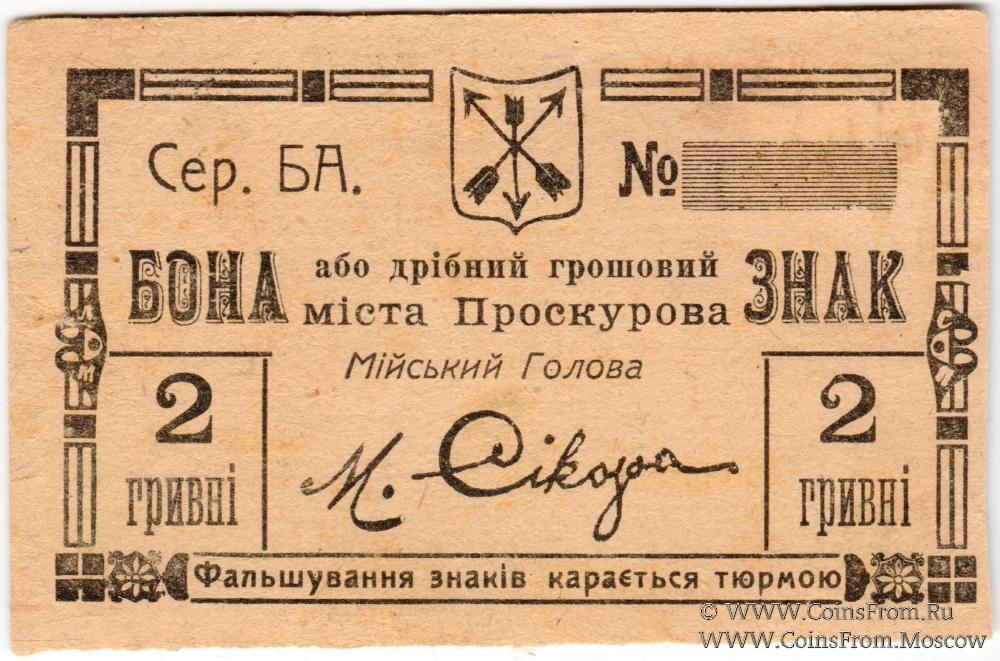 2 гривны 1919 г. (Проскуров)