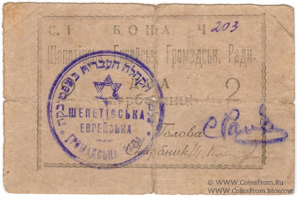 Бона без даты (1919 г.). Шепетовский Еврейский Общественный Совет (Шепетівська Єврейська Громадська Рада).